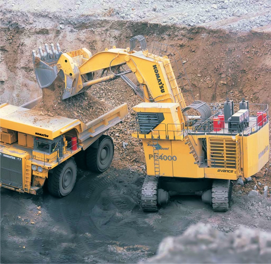 Visit KOMATSU for more information. |  | KOMATSU PC8000 Super Shovel - Operating weight 1,540,000-1,575,000 lb, shovel & backhoe capacity 55yd3.